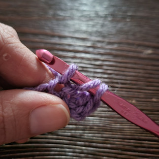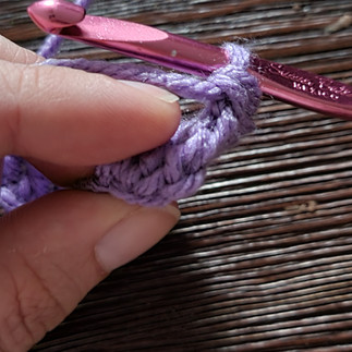 By chaining 2 & inserting directly next to the chain, the chain 2 is not counted as a stitch and, therefore, will be ignored when counting stitches for the row. The next row, we will count the chain 2 as a stitch. Once you are ready, DC across like normal, but skip the stitch directly next to the chain: