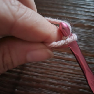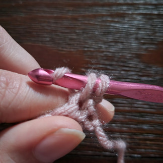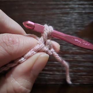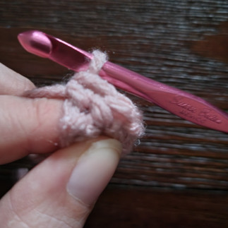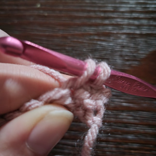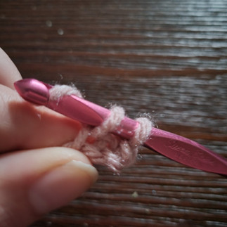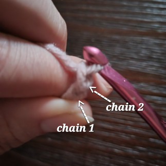 Now we can move on to how to create a single crochet aka SC/ double crochet aka DC. The first step is to insert the hook into the 2nd chain from the hook:
