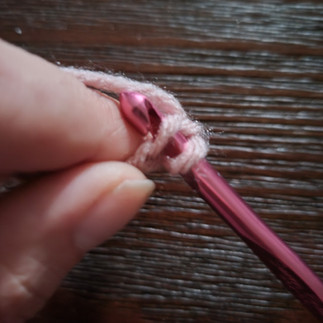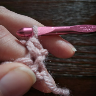 After the slipknot, the chain is the next step to creating a project. It can consist of as many or as little chains as you need. Typically, a project will give you a number of chains to make plus an extra number (e.g. 24 + 1, 32 + 2, 140 + 3). The extra chain(s) are the equivalent of a turning chain. For this example, I will be doing 11 + 1.